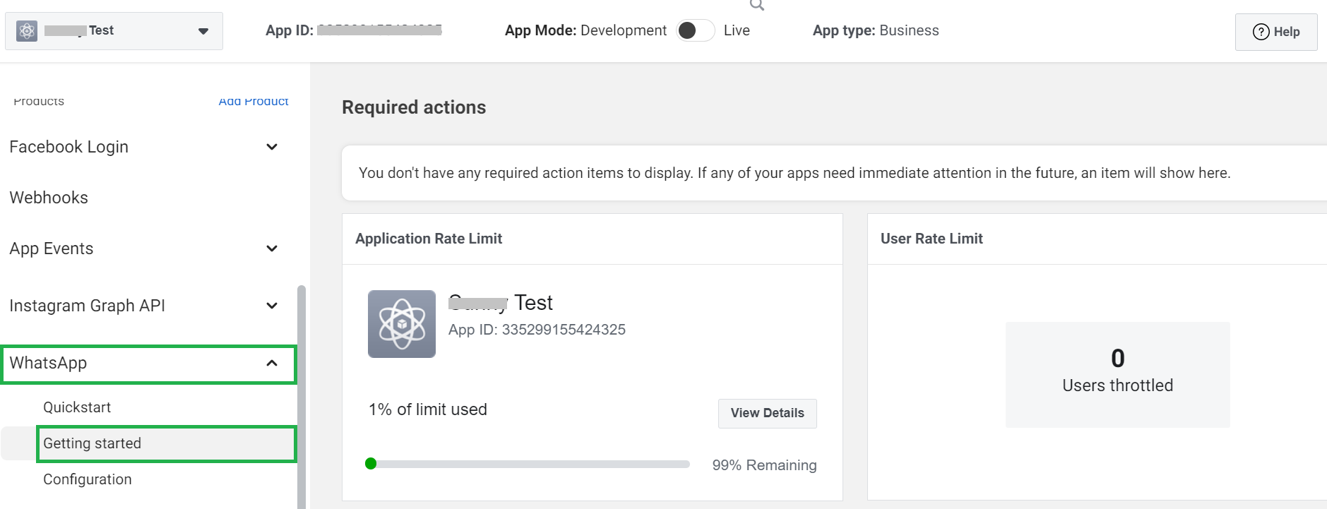 Now click on “WhatsApp” and then on “Getting Started”, you can see all these on the bottom-left menu.