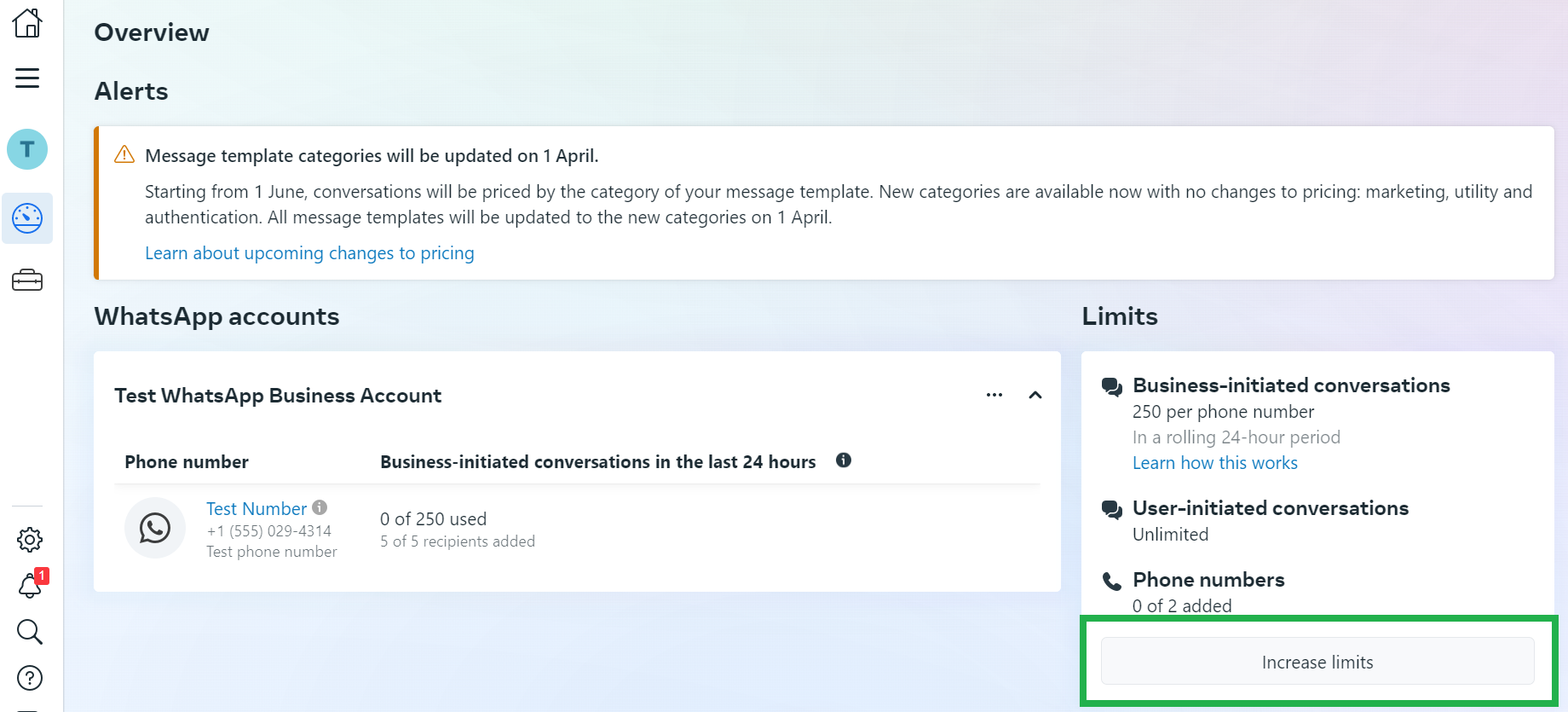 After this overview page will come, there click on the “Increase Limits” button.